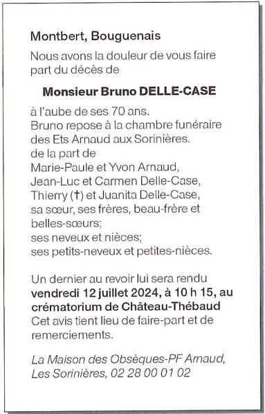 Cet espace « condoléances » est dédié à la mémoire de Monsieur Bruno DELLE-CASE.