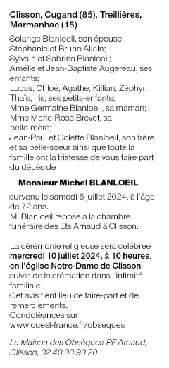 Cet espace « condoléances » est dédié à la mémoire de Monsieur Michel BLANLOEIL.