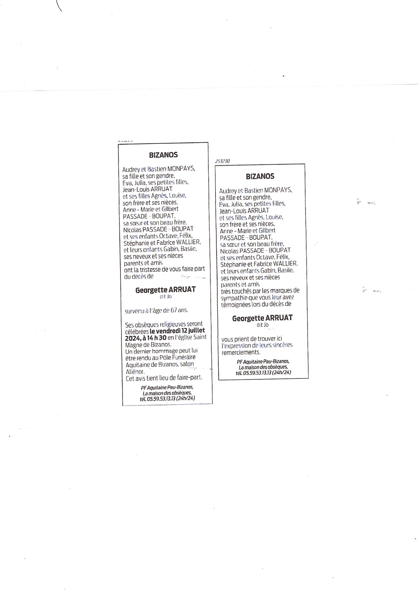 Annonce nécrologique