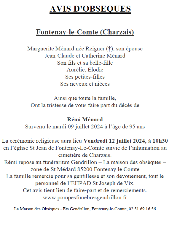 Décédé à Fontenay-le-Comte (85200) le mardi 9 juillet 2024