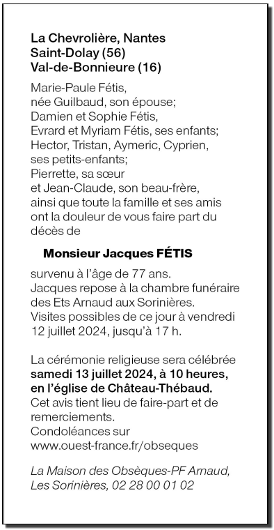 Cet espace « condoléances » est dédié à la mémoire de Monsieur Jacky FÉTIS.