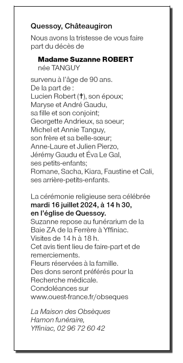 de Madame Suzanne ROBERT née TANGUY