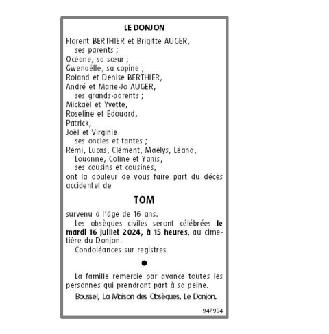 Cet espace « condoléances » est dédié à la mémoire de Monsieur Tom BERTHIER.