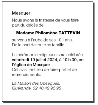 de Madame Philomène TATTEVIN née LE FLOCH
