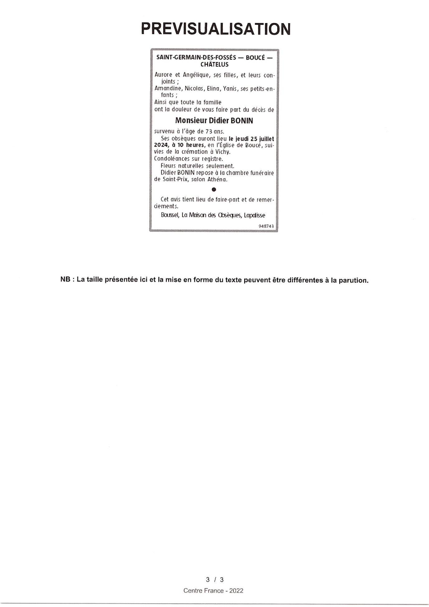 Cet espace « condoléances » est dédié à la mémoire de Monsieur Didier BONIN.