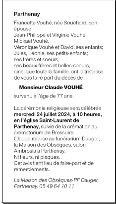 Décédé à Parthenay (79200) le dimanche 21 juillet 2024