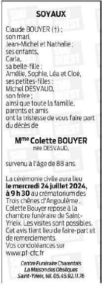 de Madame Colette BOUYER née DESVAUD