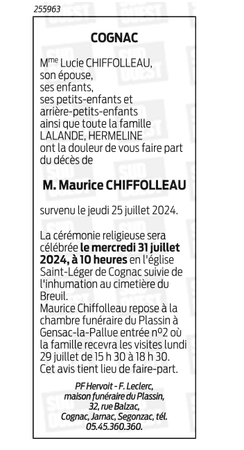 de Monsieur Maurice CHIFFOLLEAU