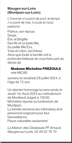 de Madame Micheline FREZOULS née MICAS