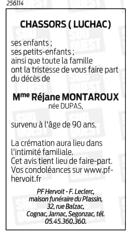Domiciliée à Boutiers-Saint-Trojan 16100