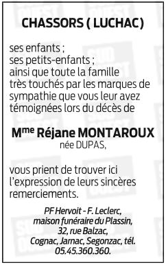 Cet espace « condoléances » est dédié à la mémoire de Madame Réjane MONTAROUX née DUPAS.