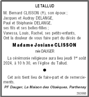 de Madame Josiane CLISSON née DAUGER