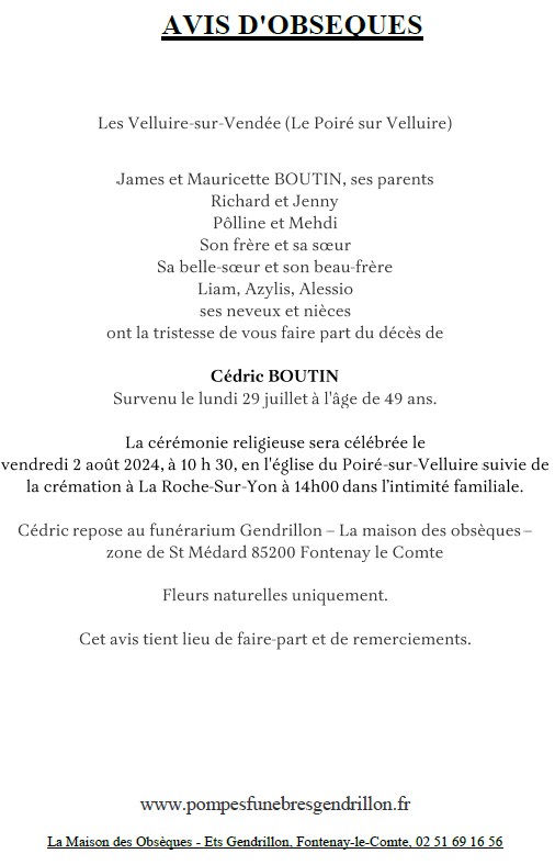 Cet espace « condoléances » est dédié à la mémoire de Monsieur Cédric BOUTIN.