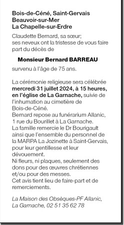 Cet espace « condoléances » est dédié à la mémoire de Monsieur Bernard BARREAU.