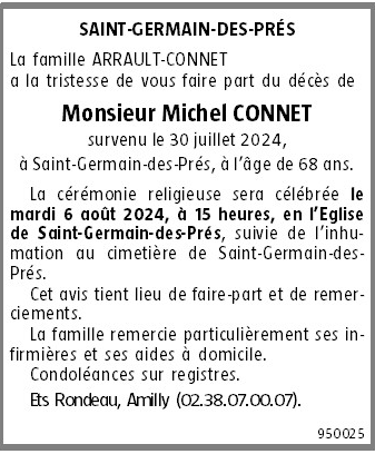 Décédé à Saint-Germain-des-Prés (45220) le mardi 30 juillet 2024