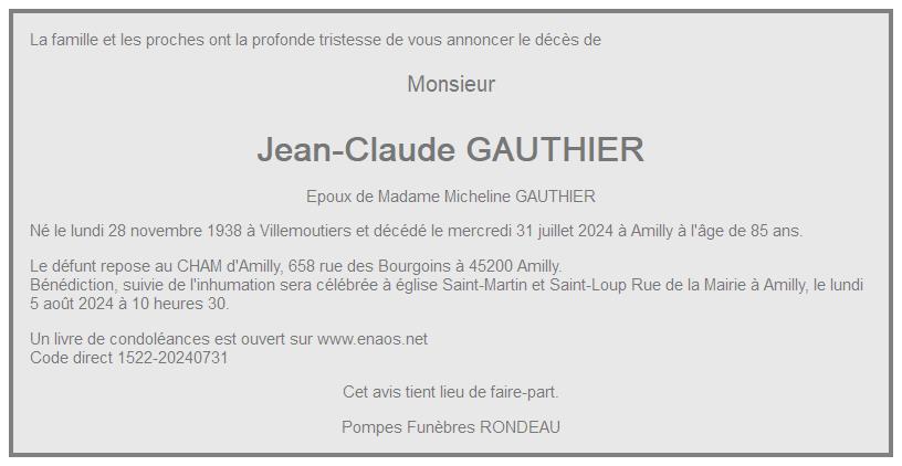 Cet espace « condoléances » est dédié à la mémoire de Monsieur Jean-Claude GAUTHIER.