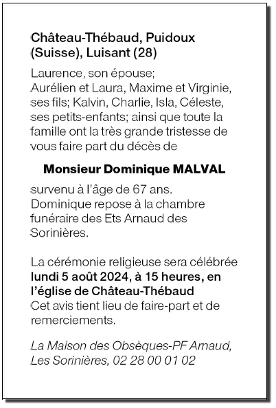 Cet espace « condoléances » est dédié à la mémoire de Monsieur Dominique MALVAL.