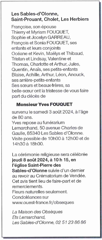 Cet espace « condoléances » est dédié à la mémoire de Monsieur Yves FOUQUET.