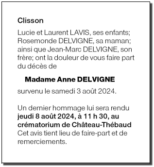 Cet espace « condoléances » est dédié à la mémoire de Madame Anne DELVIGNE.