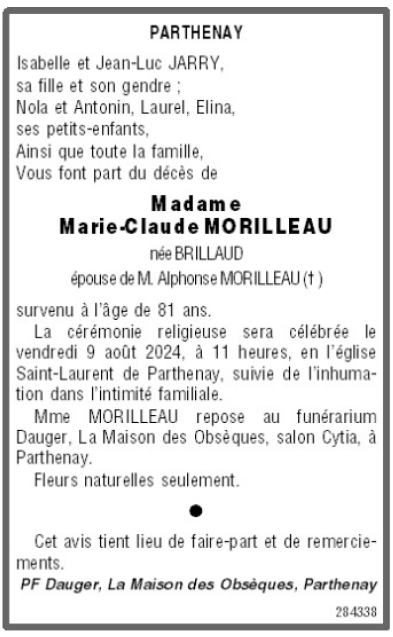 de Madame Marie-Claude MORILLEAU née BRILLAUD