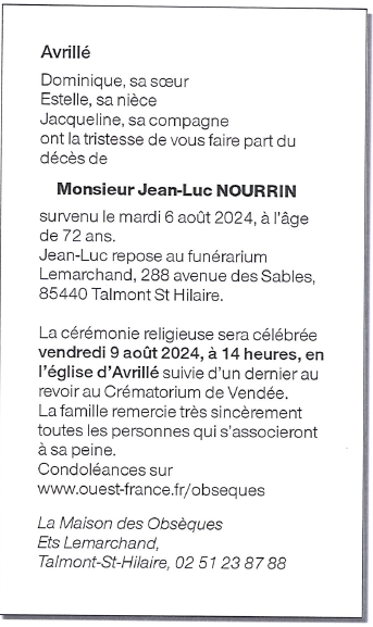 Cet espace « condoléances » est dédié à la mémoire de Monsieur Jean-Luc NOURRIN.