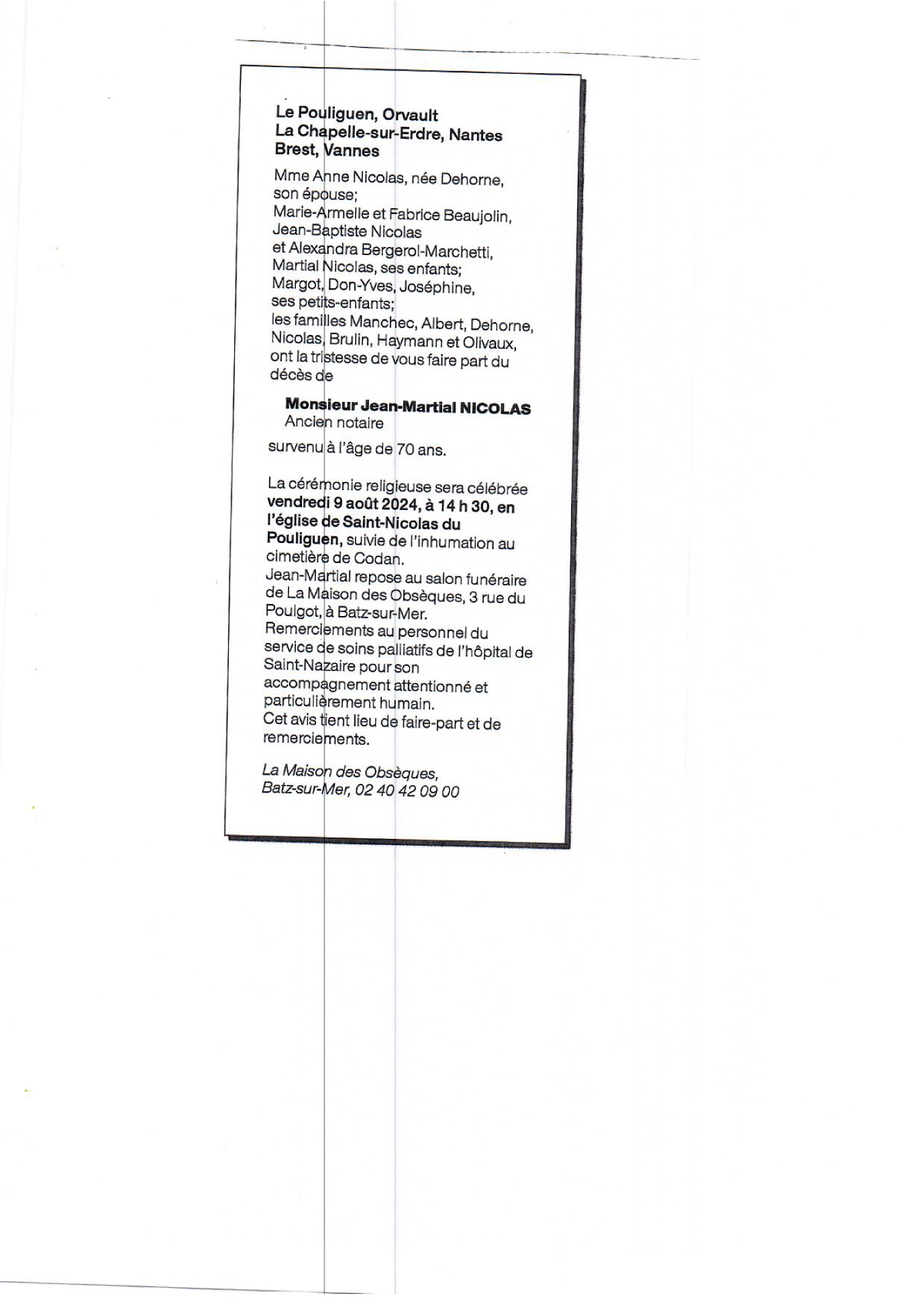 Cet espace « condoléances » est dédié à la mémoire de Monsieur Jean-Martial NICOLAS.
