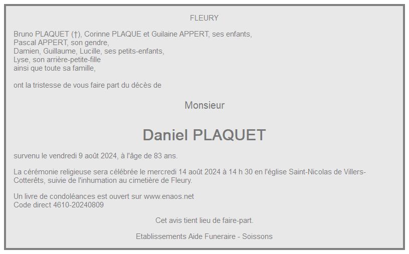 Cet espace « condoléances » est dédié à la mémoire de Monsieur Daniel PLAQUET.