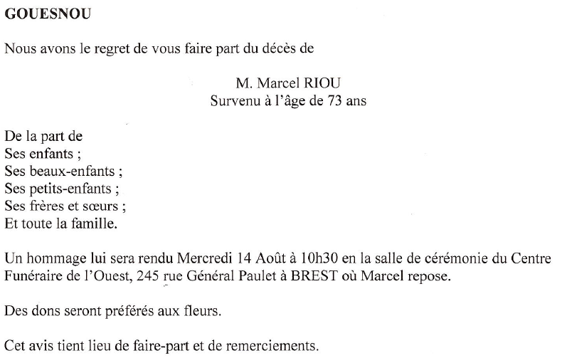 de Monsieur Marcel RIOU