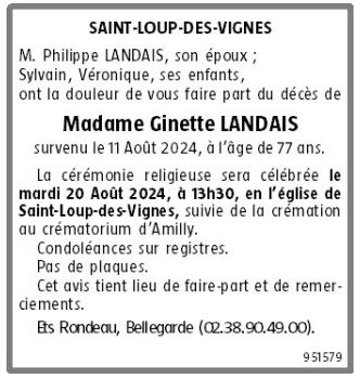 Cet espace « condoléances » est dédié à la mémoire de Madame Ginette LANDAIS née VISCONTI.
