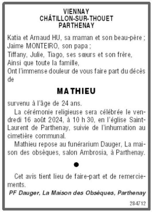 Cet espace « condoléances » est dédié à la mémoire de Monsieur Mathieu MONTEIRO.