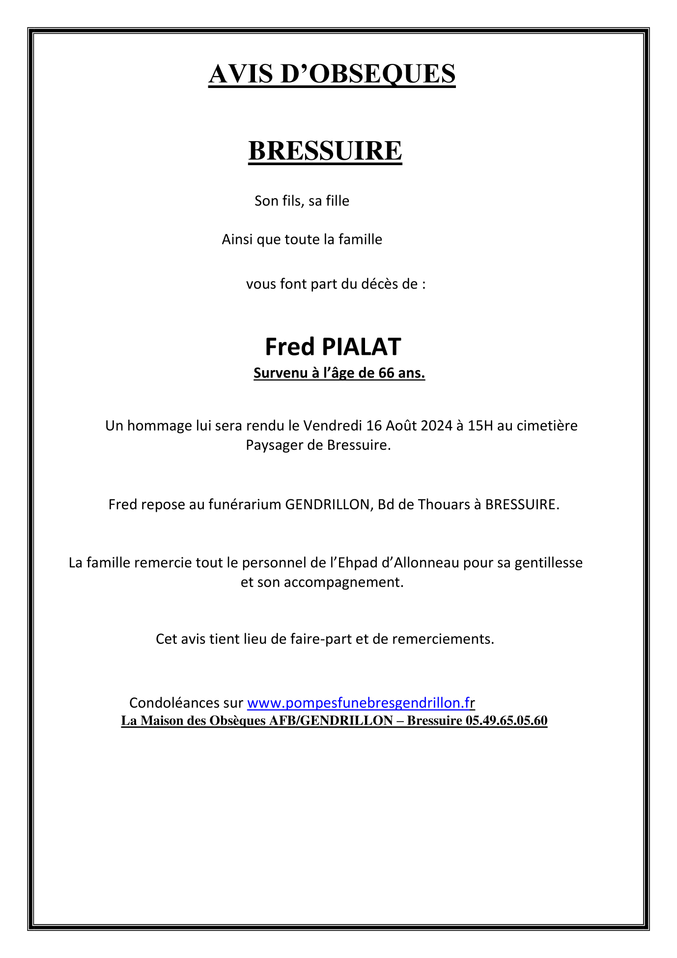 Décédé à Bressuire (79300) le lundi 12 août 2024