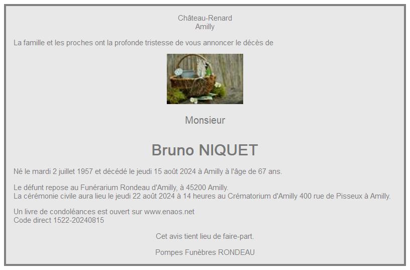Cet espace « condoléances » est dédié à la mémoire de Monsieur Bruno NIQUET.