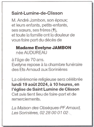 de Madame Evelyne JAMBON née AUDUREAU