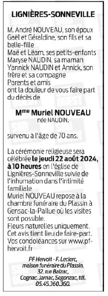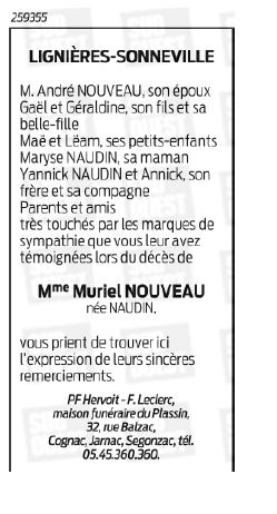 de Madame Muriel NOUVEAU née NAUDIN