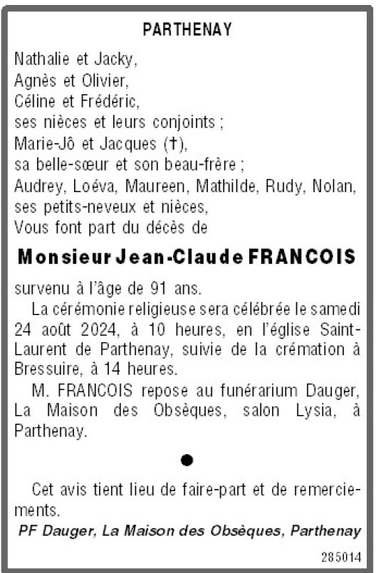 de Monsieur Jean-Claude FRANCOIS