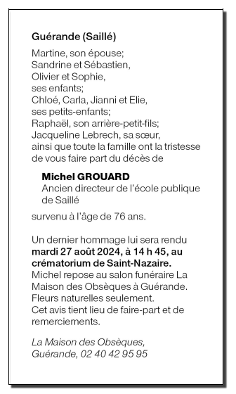 Cet espace « condoléances » est dédié à la mémoire de Monsieur Michel GROUARD.
