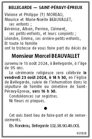Cet espace « condoléances » est dédié à la mémoire de Monsieur Marcel BEAUVALLET.