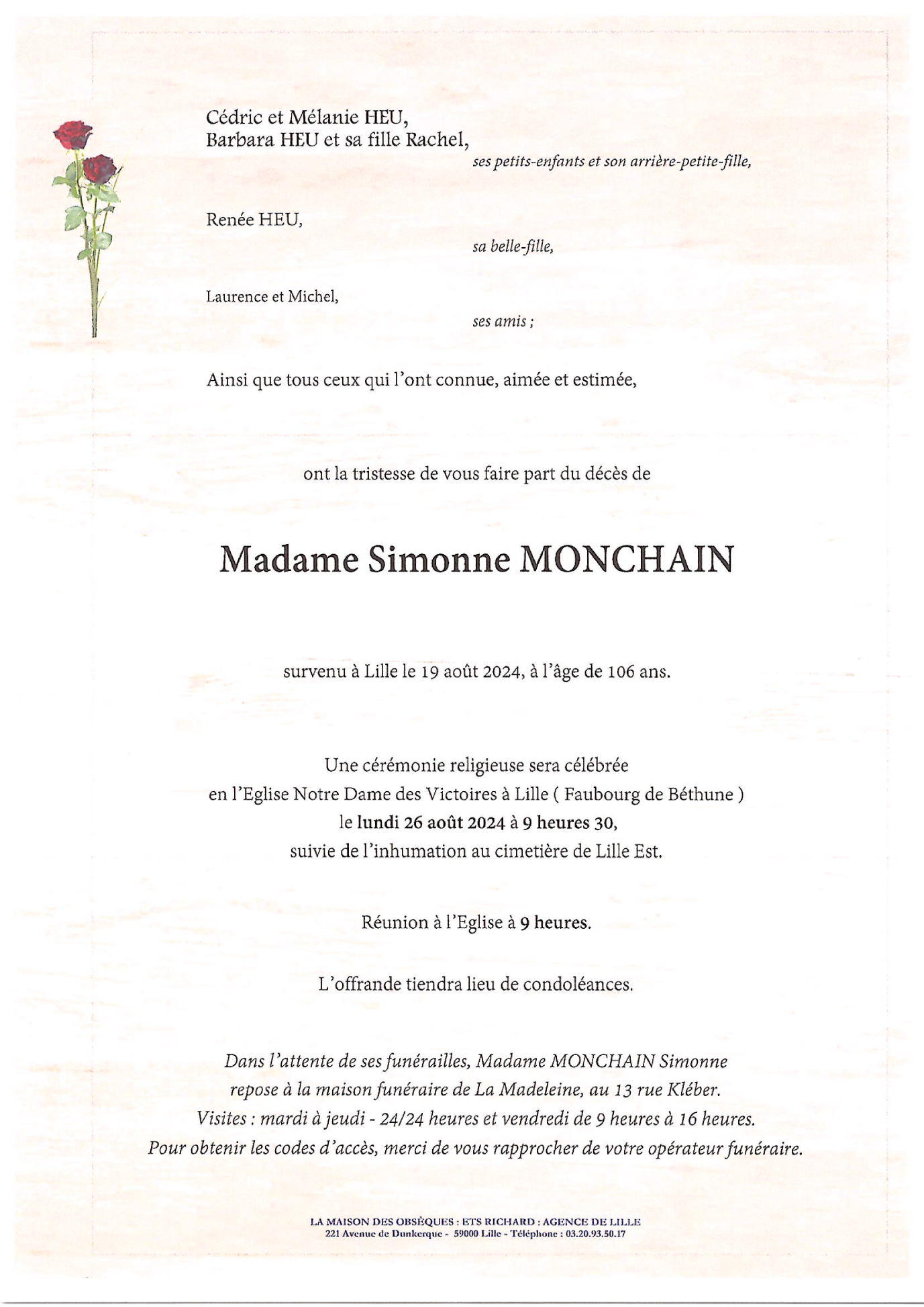 de Madame Simonne née MONCHAIN