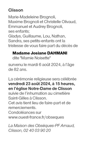 Décédée à Clisson (44190) le mardi 6 août 2024