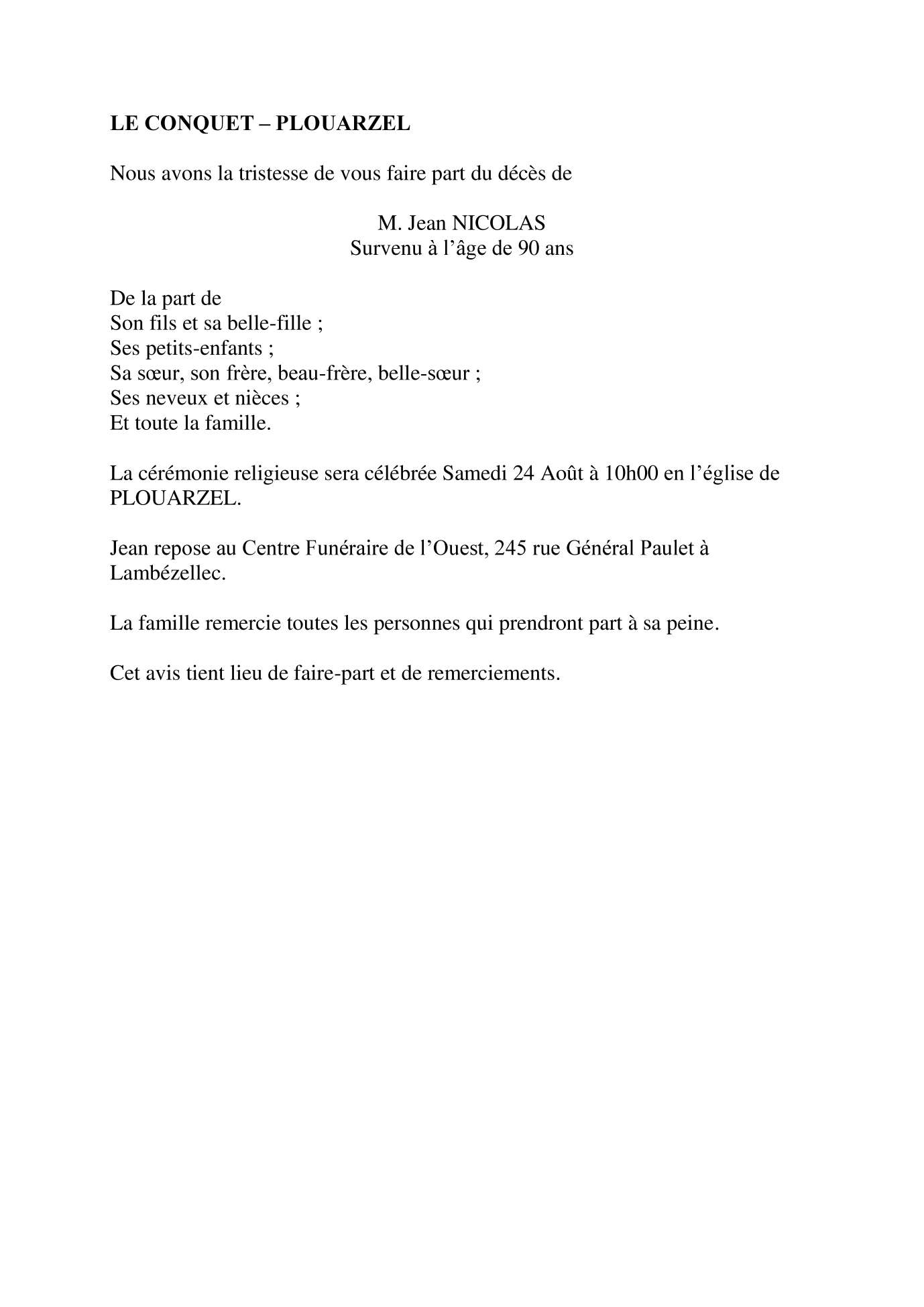 Cet espace « condoléances » est dédié à la mémoire de Monsieur Jean NICOLAS.