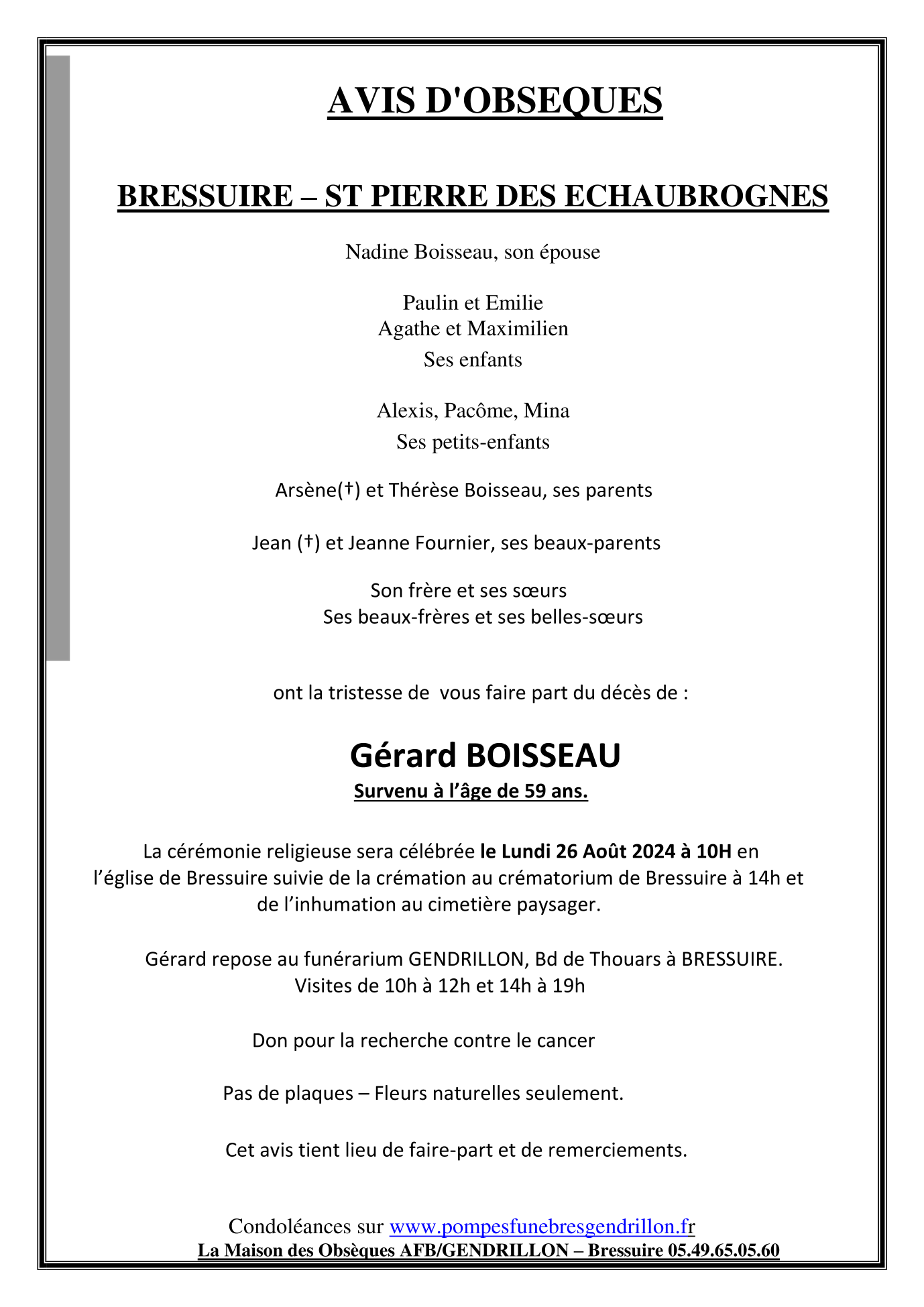 de Monsieur Gérard BOISSEAU