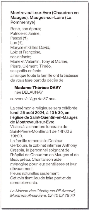 de Madame Thérèse DAVY née DELAUNAY