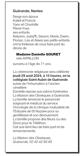 de Madame Danielle GOURET née AVRILLON