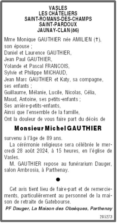 Cet espace « condoléances » est dédié à la mémoire de Monsieur Michel GAUTHIER.