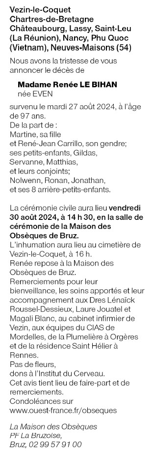 de Madame Renée LE BIHAN née EVEN