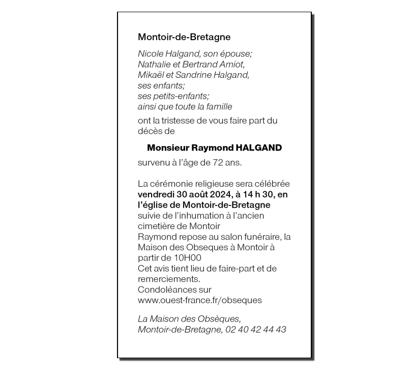 Cet espace « condoléances » est dédié à la mémoire de Monsieur Raymond HALGAND.