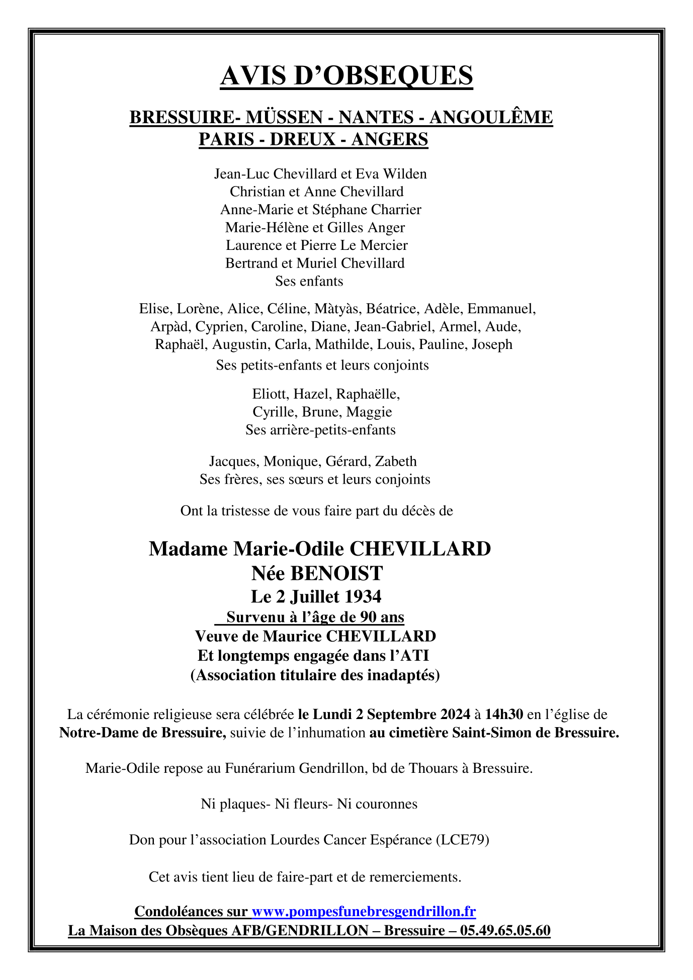 de Madame Marie-Odile CHEVILLARD née BENOIST