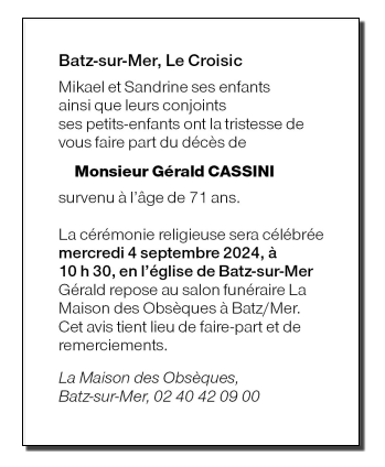 Cet espace « condoléances » est dédié à la mémoire de Monsieur Gérald CASSINI.