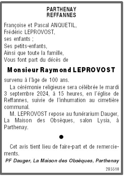 de Monsieur Raymond LEPROVOST