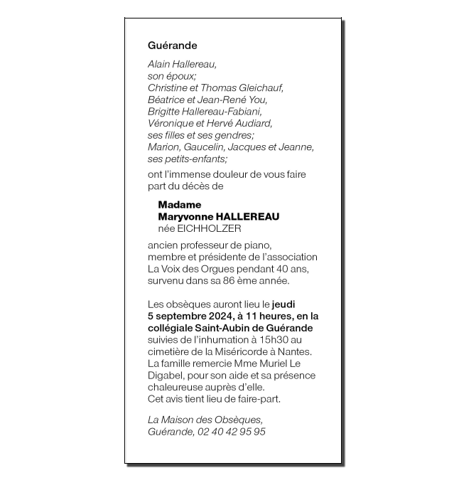 de Madame Maryvonne HALLEREAU née EICHHOLZER